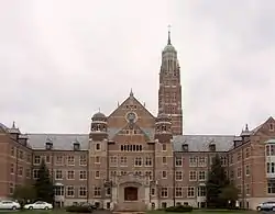 In 1931, the Josephinum moved to its present location just north of Worthington, Ohio and eleven miles (18 km) north of downtown Columbus on a landmark 100-acre (0.40 km2) campus.[6] (The current size of the campus is slightly less than 97.5 acres (395,000 m2) with another approximately 12-acre (49,000 m2) parcel close by.) The new complex was designed by architect Frank A. Ludewig[8] and cost $1.5 million dollars to construct.[9]