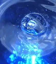 A pontil mark or punt mark is the scar where the pontil, punty or punt was broken from a work of blown glass. The presence of such a scar indicates that a glass bottle or bowl was blown freehand, while the absence of a punt mark suggests either that the mark has been obliterated or that the work was mold-blown.[1]