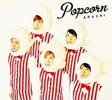 Popcorn is the eleventh studio album of the Japanese boy band Arashi. The album was released on October 31, 2012 under their record label J Storm in two editions: a first press/limited edition and a regular edition. Though both versions contains a single CD and the same track list, the first press edition features special packaging of 24P photo booklet Until The Popcorn Pops and bonus stickers. With more than 750,000 units sold, the album was certified for Triple Platinum by the Recording Industry Association of Japan (RIAJ).[1] It was released digitally on February 7, 2020.[2][3]