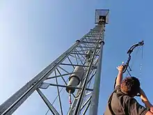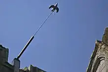 Popinjay or Papingo (an old word for parrot, designating a painted bird), also called pole archery, is a shooting sport that can be performed with either rifles or archery equipment. The object of popinjay is to knock artificial birds off their perches. The rifle form is a popular diversion in Denmark; a Scottish variant is also known. The archery form, called staande wip[1] in Dutch language and papegai (i.e. parrot)[2] in French, is popular in Belgium, and in Canada among descendants of 20th-century Belgian emigrants; it is shot occasionally in the United Kingdom under the governance of the Grand National Archery Society. In Germany a traditional shooting at wooden birds placed on a high pole is called "Vogelschießen" (that is "bird shooting"). These are carried out either with small bore rifles or crossbows.