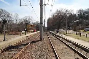 Poplar is a station on the Port Authority of Allegheny County's light rail network, located in Mount Lebanon, Pennsylvania. The street level stop is located in a densely populated residential area. Its primary purpose is to serve commuters within walking distance, providing access toward Downtown Pittsburgh, South Hills Village, or Library