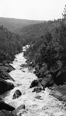 The Poplar's flow has been modified in the past by dams. In the early 20th century, two dams were located 2.9 and 5.6 miles (4.7 and 9.0 km) above the mouth of the river.[9] In 1923, another dam was installed to power the nearby township of Lutsen,[10] the only hydropower plant on a North Shore stream.[11]
