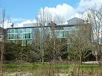 A low, partly underground former oven hall on Søndre Fasanvej serves as a vestibule to a complex of former factory buildings. It is roofed by three barrel vaults supported by pillars. The building to the south contains residences for international students and a canteen. The building to the north contains class rooms and IT facilities. Behind the complex is another building which home to Department of Intercultural Communication and Management and the Department of Management, Politics and Philosophy. Another building, further to the east, is a former raw material storage building which was adapted to its present use by Henning Larsen Architects after they won an architectural competition in 2006. It has retained its industrial character on three sides but has a glazed façade facing the park. It now contains flexible study environments. The former Director's House is also used by CBS.