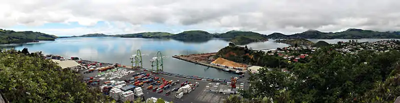 ![]() Looking across Port Chalmers and the Otago Harbour to the Otago Peninsula | |