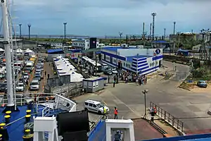 Port Kavkaz (Russian: Порт Кавказ) is a small harbour on the Kerch Strait in Krasnodar Krai, Russia. The port is able to handle vessels up to 130 metres (430 ft) in length, 14.5 metres (48 ft) in breadth and with draft up to 5 metres (16 ft).[2]
