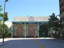 A more definitive plan came on June 7, 2011, when Green Bay-based Schreiber Foods announced plans to demolish the main mall property, the former JCPenney anchor location (which had never been redeveloped since its closure), and an adjacent Days Inn and build a new $50 million corporate headquarters and technology center on the site.[10] TIF funding would be transferred to the project in July 2011.[11] The tearing down of the mall property began with recycling of materials in July 2011, followed by the demolition of the Days Inn the following fall,[12] and the demolition of the remainder of the mall during the first half of 2012.[13][14] The new limestone-and-glass headquarters building, which opened in June 2014, consolidated Schreiber's Green Bay operations into one location (it was formerly spread out among 6 leased offices throughout the downtown core); it also features green space and a new east–west street to connect Washington and Adams Streets.[15]