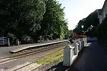 In 2002 all stations received platforms, and the little used passing loop at this station received another (seldom used) full-height platform on the "down" side, together with waiting shelter, indicative of the management policy to provide passenger facilities at each station, seemingly regardless of how well patronised the stations were.