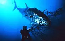 The tuna, called by Strabo "sea pig" because it hardly has any waste and can exceed 200 kilograms. Its use is as follows: out of every 100 kilograms of gross weight, 61 kilograms of meat are obtained for salting and canning, 8 kilograms of other inferior meat that is not salted and 4 kilograms of mouths and intestines that are salted. The remaining 27 kilograms of offal —head, bones and fins— are used to produce guano, a type of fertilizer of which there are numerous factories on Isla Cristina itself and which in another era was even used to produce electricity.[4] Both tuna and sardine were the first species in the port to be canned, in fact, the port is still one of the first in the country in sardine catches.
