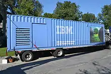 The Portable Modular Data Center is either fully or partially loaded with computer equipment can be transported using standard shipping methods. The PMDC is weather-resistant and insulated and can be placed in environments like the tundra or the desert.[1]