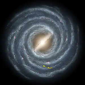 Artist's rendering shows a view of our own Milky Way Galaxy and its central bar as it might appear if viewed from above