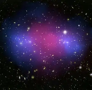 A powerful collision of galaxy clusters has been captured by NASA's Hubble Space Telescope and Chandra X-ray Observatory. This clash of clusters provides striking evidence for dark matter and insight into its properties.