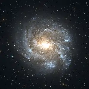The image is a composite of several shots taken by Hubble Space Telescope on September 11, 2002 using ACS instrument with 435nm (blue) and 814nm (red) wavelength filters. Color image processed by WikiSky team.