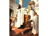 A prophet from Judah appears before Jeroboam with a warning message from the Lord. Attempting to arrest the prophet for his bold words of defiance, his hand is "dried up," and the altar before which he stands is rent asunder. At his urgent entreaty his "hand was restored him again"; but the miracle makes no abiding impression on him.