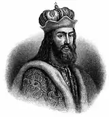 Saint Vladimir I of Kiev (c. 958–1015) was the grand prince of Kiev who converted to Christianity in 988, and baptised the entire Kievan Rus' region. His name may be spelled in different ways: in Old East Slavic as Volodimir (Володимир), in modern Ukrainian as Volodymyr (Володимир), in Old Church Slavonic and modern Russian as Vladimir (Владимир), in Old Norse as Valdamarr and the modern Scandinavian languages as Valdemar. He died at Berestovo, near Kiev, while on his way to chastise the insolence of his son, Prince Yaroslav of Novgorod. The various parts of his dismembered body were distributed among his numerous sacred foundations and were venerated as relics. One of the largest Kievan cathedrals is dedicated to him. The Roman Catholic and Eastern Orthodox churches celebrate the feast day of St. Vladimir on 15 July.