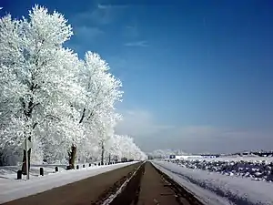 M-28 in Schoolcraft County, Michigan, a 27-mile (43 km) segment of "straight as an arrow" highway.