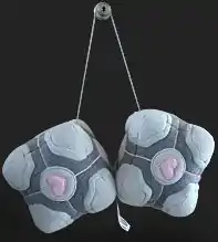 The popularity of the game and its characters led Valve to develop merchandise for Portal made available through its online Valve physical merchandise store. Some of the more popular items were the Weighted Companion Cube plush toys and fuzzy dice.[130] When first released, both were sold out in under 24 hours.[131] Other products available through the Valve store include T-shirts and Aperture Science coffee mugs and parking stickers, and merchandise relating to the phrase "the cake is a lie", which has become an internet meme. Wolpaw noted they did not expect certain elements of the game to be as popular as they were, while other elements they had expected to become fads were ignored, such as a giant hoop that rolls on-screen during the final scene of the game that the team had named Hoopy.[15][132]
