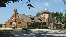 Porter Pool Bathhouse is a historic bathhouse located at Shelbyville, Shelby County, Indiana. It was built in 1930, and is a 1+1⁄2-story, rectangular, Art Deco style brick building.[2]: 5