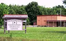 Before a new elementary school was built in Porterfield in 1963,[8] the area was served by several small schools: Miles School and Winesville School to the north, Dickie School and Fairmont School to the northwest, Fairdale School to the southwest, Phillips School, Plumb School, and Sandberg School to the south, Stewart School to the southeast, and Redelings School to the east.[9][10][11] The old county school buildings were sold off in 1963.[12] Porterfield Elementary School was part of the School District of Marinette[4] and served approximately 120 students.[13] The elementary school was closed at the end of the 2006–2007 school year.[14][15][16][17]