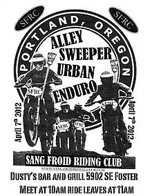 The Portland Alley Sweeper, also called the Alley Sweeper Urban Enduro,[1][2] is a motorcycle rally in the city alleys of Portland, Oregon. Begun in 2009 by Zac Christensen of the Sang Froid Riding Club motorcycle club in Portland,[2][3] the rally has been described as "a cross-city tour of Portland’s mangled side streets by way of whatever two-wheeled contraption you can hobble together", drawing around 300 riders a year.[4]