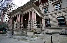 Portland City Hall is the headquarters of city government of Portland, Oregon, United States. The four-story Italian Renaissance-style building houses the offices of the City Council, which consists of the mayor and four commissioners, and several other offices. City Hall is also home to the City Council chambers, located in the rotunda on the east side of the structure. Completed in 1895, the building was added to the National Register of Historic Places on November 21, 1974.[2] City Hall has gone through several renovations, with the most recent overhaul gutting the interior to upgrade it to modern seismic and safety standards. The original was built for $600,000, while the 1996 to 1998 renovation cost $29 million.