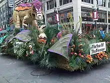 Dragon boat-replica float in 2008 parade. The festival includes races with actual dragon boats.