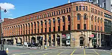 The 1911 Victoria County History refers to "a very fine vista of unbroken line" of warehouse buildings "chiefly constructed in brick and terra cotta".[2] Its parade of impressive buildings was reduced by bombing during the Manchester Blitz of the Second World War and some later development ignored the old building line.[3]