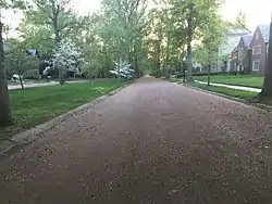 Due to a quirk of the time period, a number of the streets are private streets rather than public ones. In the late 1800s, when the city government of St. Louis had not yet adopted a policy of aggressively paving streets, homeowners in the area privately paved the roads at their own expense, but also allowed them the right of exclusion on them.[3] The result was something similar to a "gated community", albeit not entirely, as some public road access still exists. Additionally, under the reign of St. Louis mayor Vincent Schoemehl, various city streets were blocked to create more isolated cul-de-sacs during a time of population decline for the city; while many of these changes were eventually undone, these changes tended to persist more in wealthy communities such as Portland and Westmoreland Places.[3]