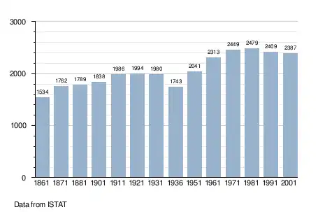 - "Superficie di Comuni Province e Regioni italiane al 9 ottobre 2011". Italian National Institute of Statistics. Retrieved 16 March 2019.