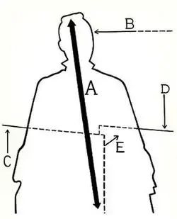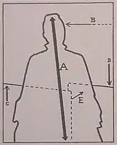 Portrait of Madame Cézanne was exhibited along with works such as Man with Folded Arms at Lichtentein's first Pop exhibition in Los Angeles.[1] The linear twice-removed black-and-white (along with Man with Folded Arms) is regarded as a quotation of Erle Loran's outline diagram of Cézanne's compositional methods[2] published in a diagram book called Cézanne's Composition.[3] The book was popular in the academic community.[4] Loran's representation in a "harsh black outline" depicted the axes of the composition without representing the "texture and expressiveness of Cézanne's original." In fact, Loran stated that "this diagrammatic approach may seem coldly analytical to those who like vagueness and poetry in art criticism."[5] Loran's diagrammatic techniques were standard at the time; redrawn outlines of the figure were illustrated with alphabetized arrows to identify areas and directions. The diagram highlighted body part positioning without studying the painted surface.[6]