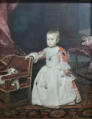 The marriage was initially viewed as a success by the royal court when Mariana gave birth to a daughter, the Infanta Margaret Theresa. They also had two sons: Felipe Próspero was the original heir to the throne, but died in 1661 aged 3 years;[10][upper-alpha 3] Charles, the future Charles II of Spain, was born later that year.[11][12]