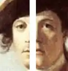Portrait of Robert Orme is a portrait of the British Army officer Robert Orme, painted in 1756 by the British painter Joshua Reynolds, the year after Orme returned from North America. The artist shows him in the uniform of the Coldstream Guards, standing by his horse in a darkened corner of a forest. Behind is a stormy sky and visible through the trees are the red jackets of the British, referring to Orme's part in the British defeat at Monongahela.[2] According to the National Gallery, the composition of the painting was based on a sketch of Saint Francis embracing a Sick Man completed by Jacopo Ligozzi in 1752.[1]