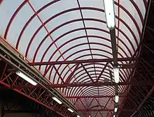 View of the 1980s British Rail era canopy over upper level platforms 1 & 2