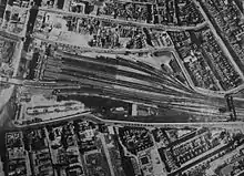 Aerial view of the station in 1946, showing seven platforms (now four).