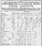 Extract from the Portsmouth Line timetable for summer 1912