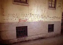 The party was founded in 1921, establishing contacts with the Comintern in 1922 and becoming its Portuguese section in 1923.[16][17] The PCP was banned after the 1926 military coup and subsequently played a major role in the opposition against the dictatorial regime of António de Oliveira Salazar. During the nearly five-decade-long dictatorship, the PCP was constantly suppressed by the secret police, which forced the party's members to live in clandestine status under the threat of arrest, torture, and murder. After the Carnation Revolution in 1974, which overthrew the regime, the 36 members of party's Central Committee had, in the aggregate, experienced more than 300 years in jail.[18]