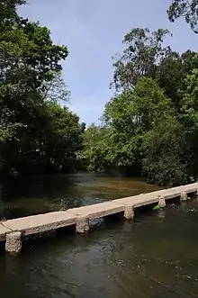After leaving the monastery, the crossing of Cávado River was made using barges landing in Barca do Lago, which literally means "Lake's barge". The river was known in antiquity as Celadus. The Brotherhood of Barca do Lago stated in 1635: "This passage is very popular and it is for more than 400 years in our peaceful possession". The Portuguese King Sancho II made the crossing there during a pilgrimage in 1244 and centuries later King Manuel I did the same in 1502. Currently, the crossing which replaces the barges in both the Coastal and the Coastal derivation of the central way is made through Ponte de Fão, built in 1892. A pilgrims' barge in Barco do Lago was reinstituted for recreational pilgrimages, with a replica of the "Barca de Carga" (Cargo's Barge) being launched in 2017.[17] For pilgrims preferring the inland route, the crossing is made throw the Medieval Bridge of Barcelos, constructed between 1325 and 1328.