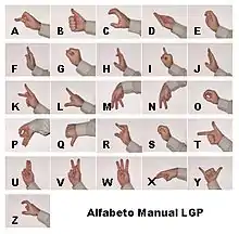 The Portuguese manual alphabet is the manual alphabet used in Portuguese Sign Language. Compared to other manual alphabets based on the Latin alphabet, it has unusual forms for many of its letters.