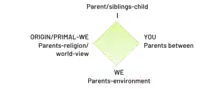 - Dimension "We" concerns an individual's relationship to their social surroundings and is largely influenced by their parents' relationship with their own social environment. Through socialization, attitudes towards social behavior and achievement norms are transferred from parents to their children. These attitudes and expectations are related to social ties beyond the immediate family, such as relationships with relatives, colleagues, social reference groups, interest groups, compatriots, and humanity as a whole. The ways in which parents interact with and navigate these social relationships shape their children's understanding and approach to social behavior.