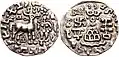 Coin of Dharaghosha, king of the Audumbaras, in the Indo-Greek style, circa 100 BCE.[15]