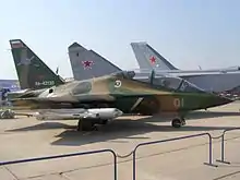 The Sh-90 (Shturmovik, Attack Aircraft) project intended to develop an attack aircraft to replace the Su-25. The main entries consisted of modified trainer designs from MiG and Yakovlev, and an unusual two-cockpit design from Sukhoi. The project was later cancelled due to the emergence of modernized Su-25 variants, such as the Su-25T, Su-25TM (Su-39) and Su-25KM.