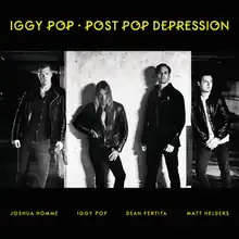 Post Pop Depression is the seventeenth studio album by American rock singer Iggy Pop, released by Caroline International / Loma Vista Recordings on March 18, 2016.[4] Produced by Josh Homme of Queens of the Stone Age, the album was recorded in secrecy and features contributions from Queens of the Stone Age keyboardist and guitarist Dean Fertita, and Arctic Monkeys drummer Matt Helders.[5][6]