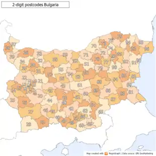 2-digit postcode areas Bulgaria(defined through the first two postcode digits)