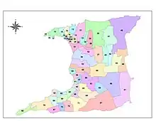 As announced in 2012, each code would be a six-digit number, with the first two digits indicating one of 72 postal districts (64 in Trinidad, eight in Tobago).[1] It was piloted in Point Fortin in 2013[2] and later tested in four other Trinidad communities, as well as the island of Tobago. It is now launched as of 2021 throughout all of the regions and municipalities of Trinidad and throughout Tobago. [3]