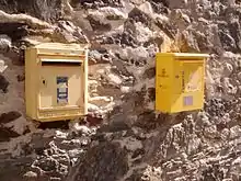 Postal services in Andorra are unique in that they are not operated by the country itself, but by its two larger neighbouring countries, Spain and France.[1] This is a legacy of the centuries of de facto control exercised by those two countries over Andorra. Correos of Spain and La Poste of France operate side by side. However the postal code system, introduced in July 2004,[2] has a different format from those of either Spain or France, consisting of the letters "AD", followed by three digits.[1]