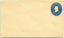 A piece of postal stationery is a stationery item, such as a stamped envelope, letter sheet, postal card, lettercard, aerogram or wrapper, with an imprinted stamp or inscription indicating that a specific rate of postage or related service has been prepaid.[1][2] It does not, however, include any postcard without a pre-printed stamp,[3] and it is different from freepost for preprinted cards issued by businesses. In general, postal stationery is handled similarly to postage stamps; sold from post offices either at the face value of the printed postage or, more likely, with a surcharge to cover the additional cost of the stationery.[4] It can take the form of an official mail issue produced only for the use of government departments.[4][5]