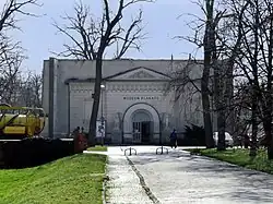The Poster Museum is housed in a modern exhibition space erected behind the historic Wilanów Palace, a 19th-century riding school located on the outskirts of Warsaw.[4]