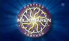 Postkodmiljonären (English translation: The postcode millionaire) is a Swedish game show based on the original British format of Who Wants to Be a Millionaire?. The show debuted on 26 August 2005[1] and is hosted by Rickard Sjöberg. It is shown every Friday and Saturday from 7:30 PM to 8 PM (UTC+1) on the Swedish commercial television station TV4. The programme is also combined with a lottery, Svenska Postkodlotteriet (The Swedish Postcode Lottery), in a twice-weekly format. The original format of the show, broadcast between 2000 and 2003, was known as Vem vill bli miljonär? and lacked the lottery tie-in.