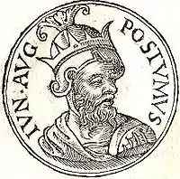 In the Historia Augusta, Postumus the Younger (Latin: Postumus Iūnior) figures as one of the so-called Thirty Tyrants who usurped power against the Roman Emperor Gallienus. According to the pseudo-historical list of 'Thirty Tyrants', the Emperor of the Gallic Empire Postumus had a son, also called Postumus, whom he nominated to be first caesar, and later even augustus and co-ruler. Postumus the Younger would have been killed together with his father in 268, during the rebellion of Laelianus (called Lollianus in the Historia).[1]