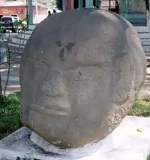 Potbelly sculptures from Sin Cabezas are stylistically related to Olmec sculpture but were reused by later peoples, being found in fill dating to the Late Classic period. The monuments at Sin Cabezas were headless when they were found and no fragments of the missing heads were evident, suggesting that they had already been damaged when they were re-erected by later occupants of the site.[24]