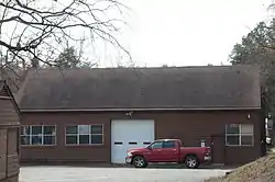 The Poteau Work Center is a utility building located at the Poteau District Headquarters of the Ouachita National Forest in Waldron, Arkansas. It is a rectangular single-story wood-frame building with gable roof, and is distinguished by centrally-located garage doors on each of its long sides. The building was (along with the adjacent residence), constructed about 1939 by a work crew of the Civilian Conservation Corps.[2]
